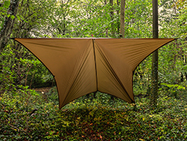 The Monsoon Sleep System comprises three components: a tarp, a hammock and a mosquito net that work hand in hand to provide you not only with probably the best night’s sleep possible outdoors but also a haven from the harsh elements encountered in the wilds - a place where you can stretch out, recharge, and plan for the trail ahead. And of course, unlike other outdoor sleeping options, the view of your surroundings is unrestricted, providing you with that wonderful feeling of being close to nature while remaining warm, dry and cosy.